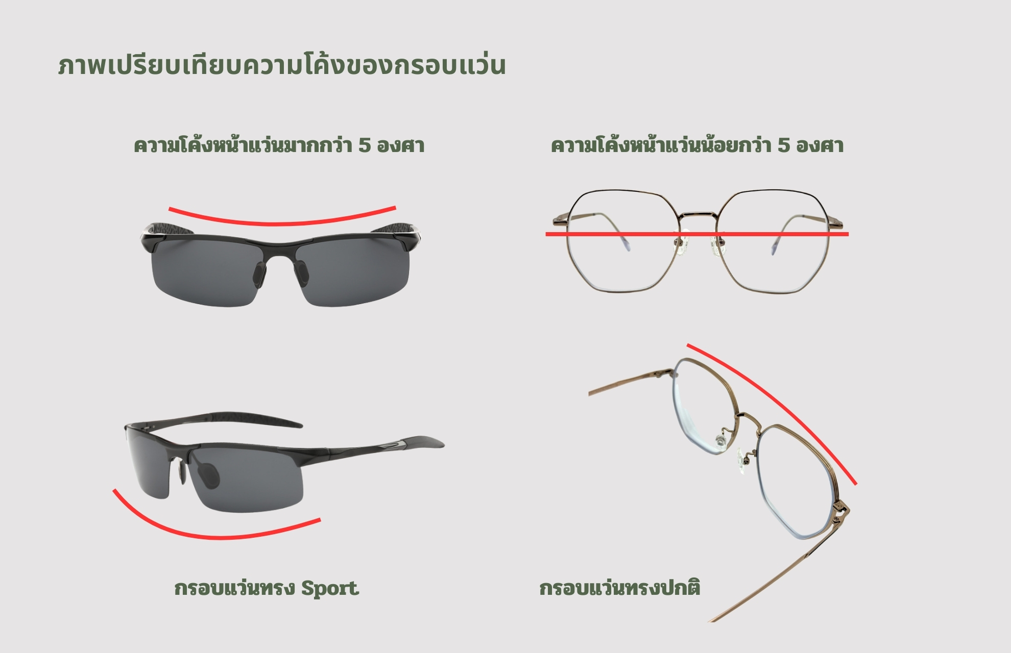 แต่ละกรอบจะมีความโค้งหน้าแว่น หรือ Face Form Angle (FFA) ที่ไม่เท่ากันการเลือกใช้โครงสร้างเลนส์ให้เหมาะสมกับกรอบเพื่อให้ได้มุมมองที่ดีที่สุด และ ป้องกันการที่เลนส์จะหลุดออกจากกรอบระหว่างใส่นั้นเป็นเรื่องที่สำคัญอีกอย่างหนึ่งที่ต้องระวังแล้วกรอบแบบไหนเหมาะกับเลนส์โครงสร้างไหนบ้างมาดูกัน